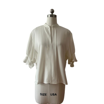 Material Composition: Soft 22%nylon39%bamboo39%polyester jacquard solid smooth fabric. Occasion: Womens Tops And Blouses suitable for everyone. Design:This Women's Apparel, Ruffled collar with covered button all down the front planket. Wash at a...