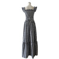 Smocked Ruffled Plaid Ruffle Hem Dress